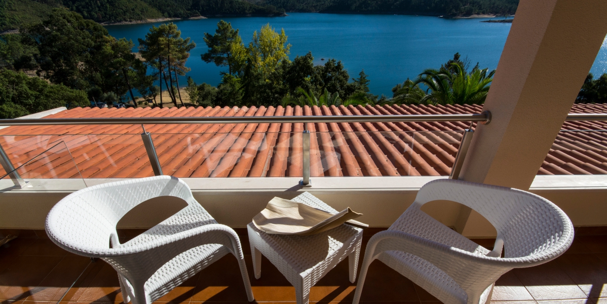 WC Privativo - Serviço de Quarto Diário - WI-FI - Vista para a água - Ferro / Tábua de engomar - Área de descanso - Roupa de cama e toalhas fornecidas - Talheres - Berço extra a pedido - Vistas - Casa de banho - Serviço de limpeza diário - Ambiente exterior - Cadeiras de pátio - Não fumadores